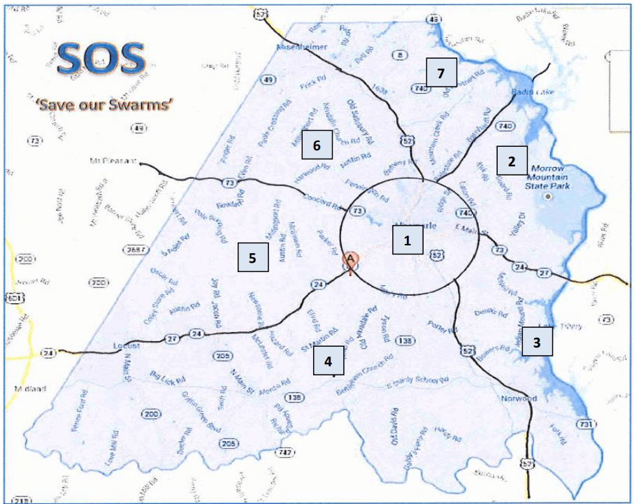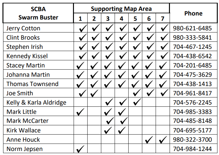 The Stanly County Swarm Busters are beekeeping experts who know how and are willing to remove and relocate honeybee swarms safely and humanely. The honeybee is our most beneficial insect so we must do all we can to protect honeybees we depend on to pollinate much of our food.